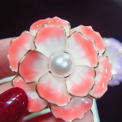 Çəhrayı gül ləçəkli mirvari broşStokda yoxdur