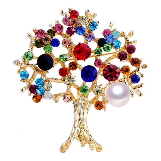 Kristal qaşlarla bəzədilmiş həyat ağacı dizaynlı mirvari broşStokda yoxdur