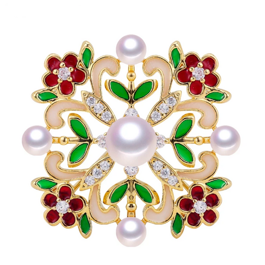 Qırmızı-yaşıl qaşlarla bəzədilmiş premium mirvari broşStokda yoxdur