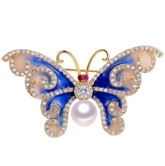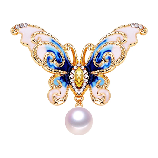 Mavi quyruqlu kəpənək dizaynlı mirvari broşStokda yoxdur