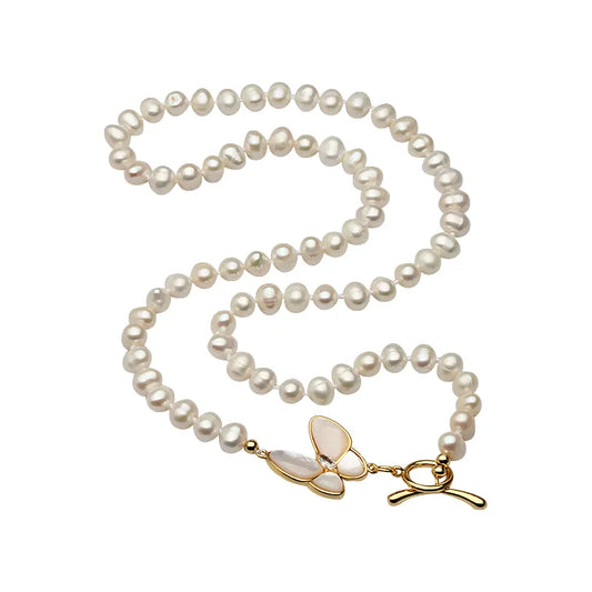 Qızılı kəpənək kulonla bəzədilmiş mirvari boyunbağıStokda yoxdur