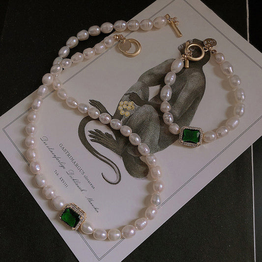 Yaşıl kristal qaşla bəzədilmiş ağ mirvari dəst - boyunbağı, qolbaqStokda yoxdur