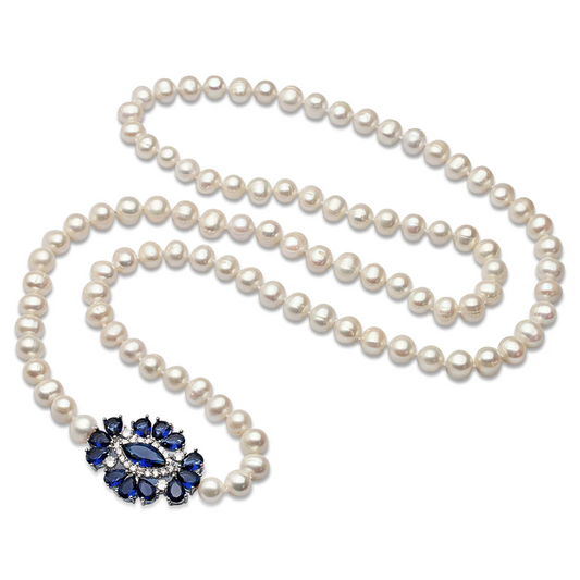 Mavi zirkon qaşlı ecazkar kulonla bəzədilmiş mirvari boyunbağıStokda yoxdur