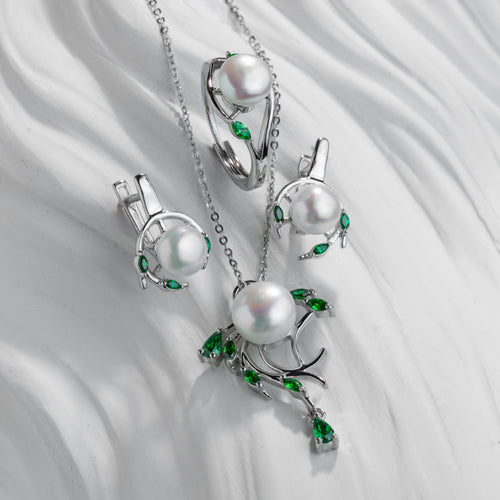 Ağac budağı dizaynlı italyan gümüşü premium mirvari dəstStokda yoxdur