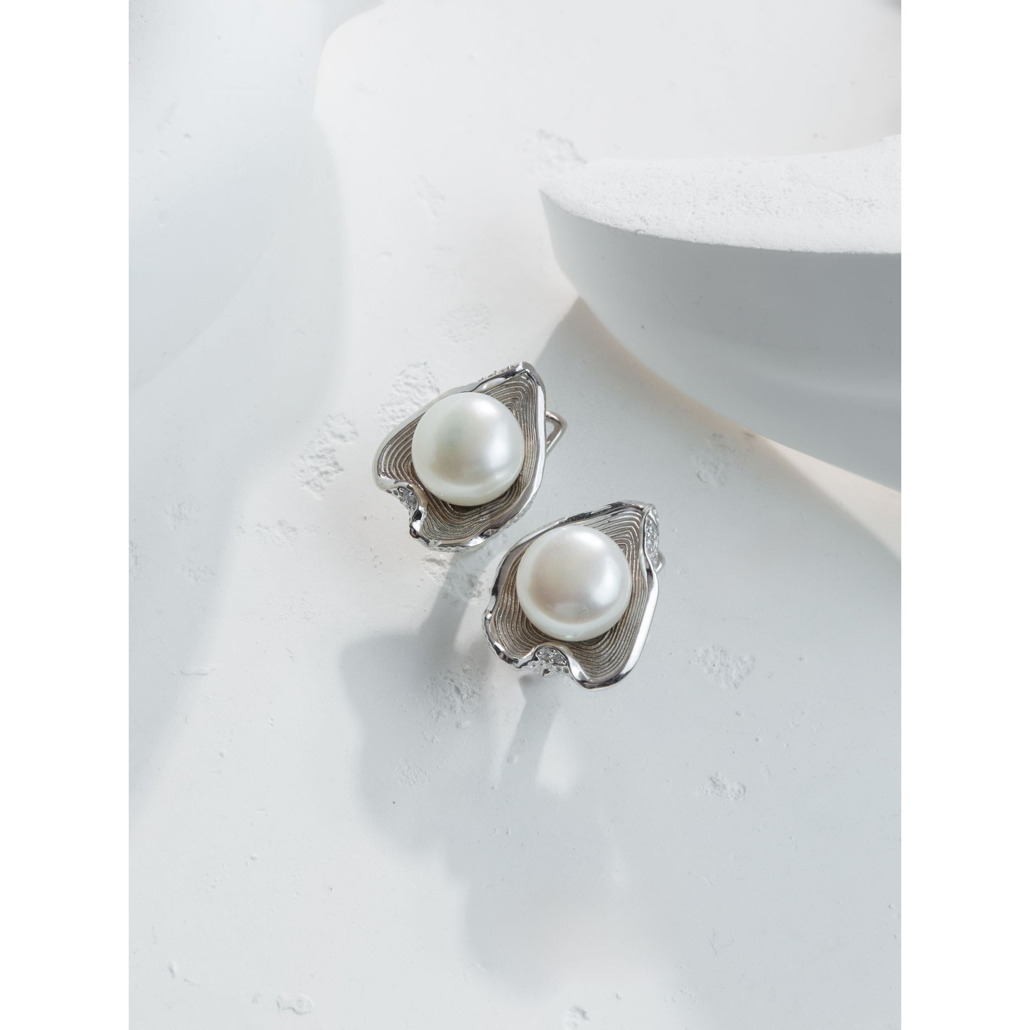 • Qalereya görüntüsünə şəkil yükləyin, Balıqqulağı dizaynlı qaşsız italyan gümüşü premium mirvari dəst