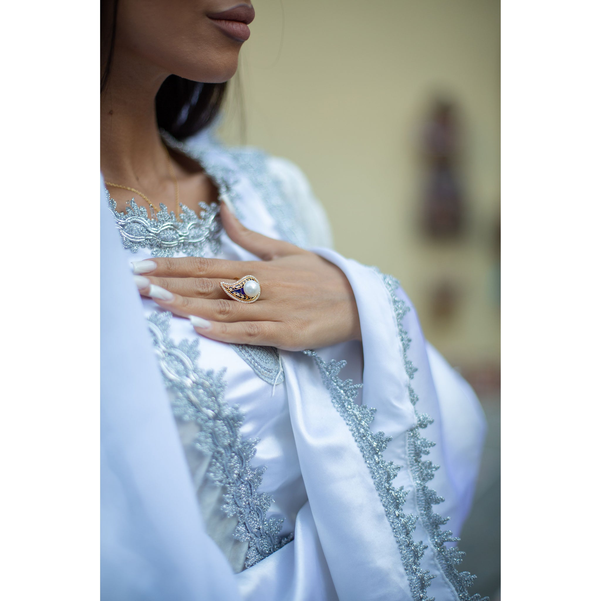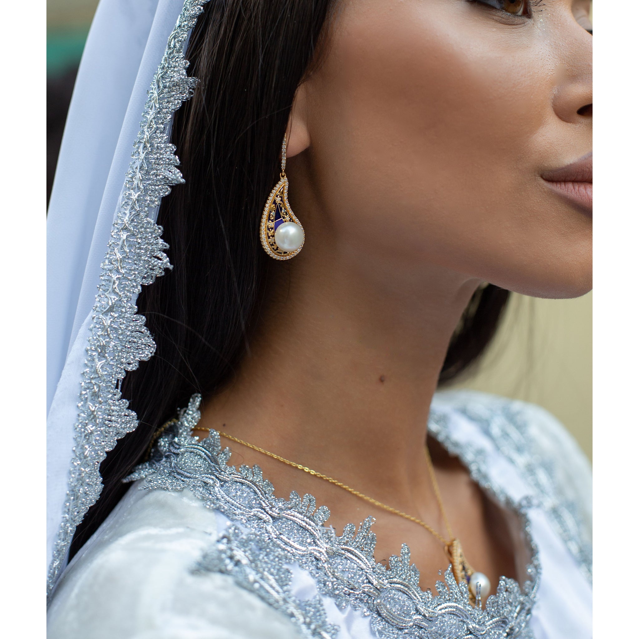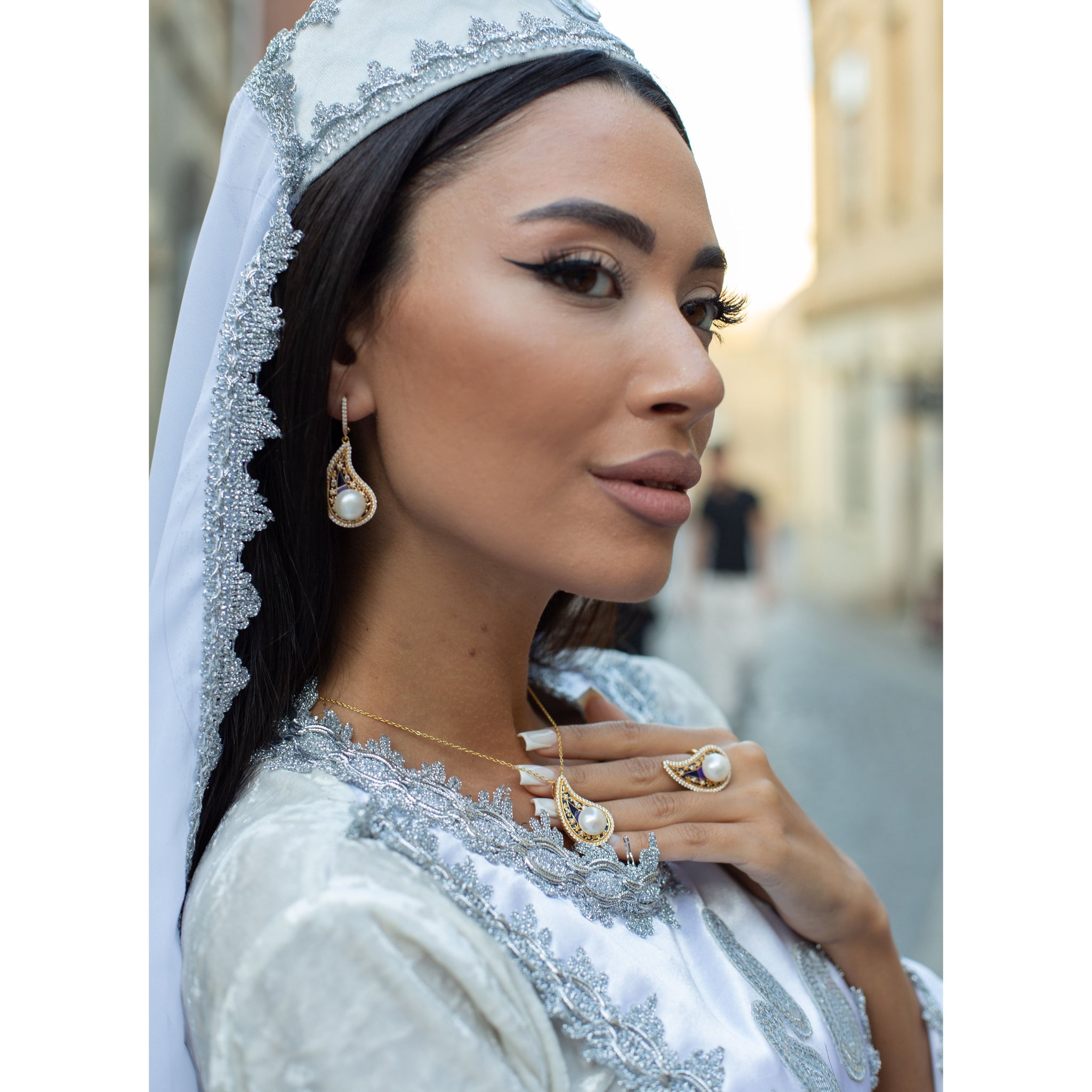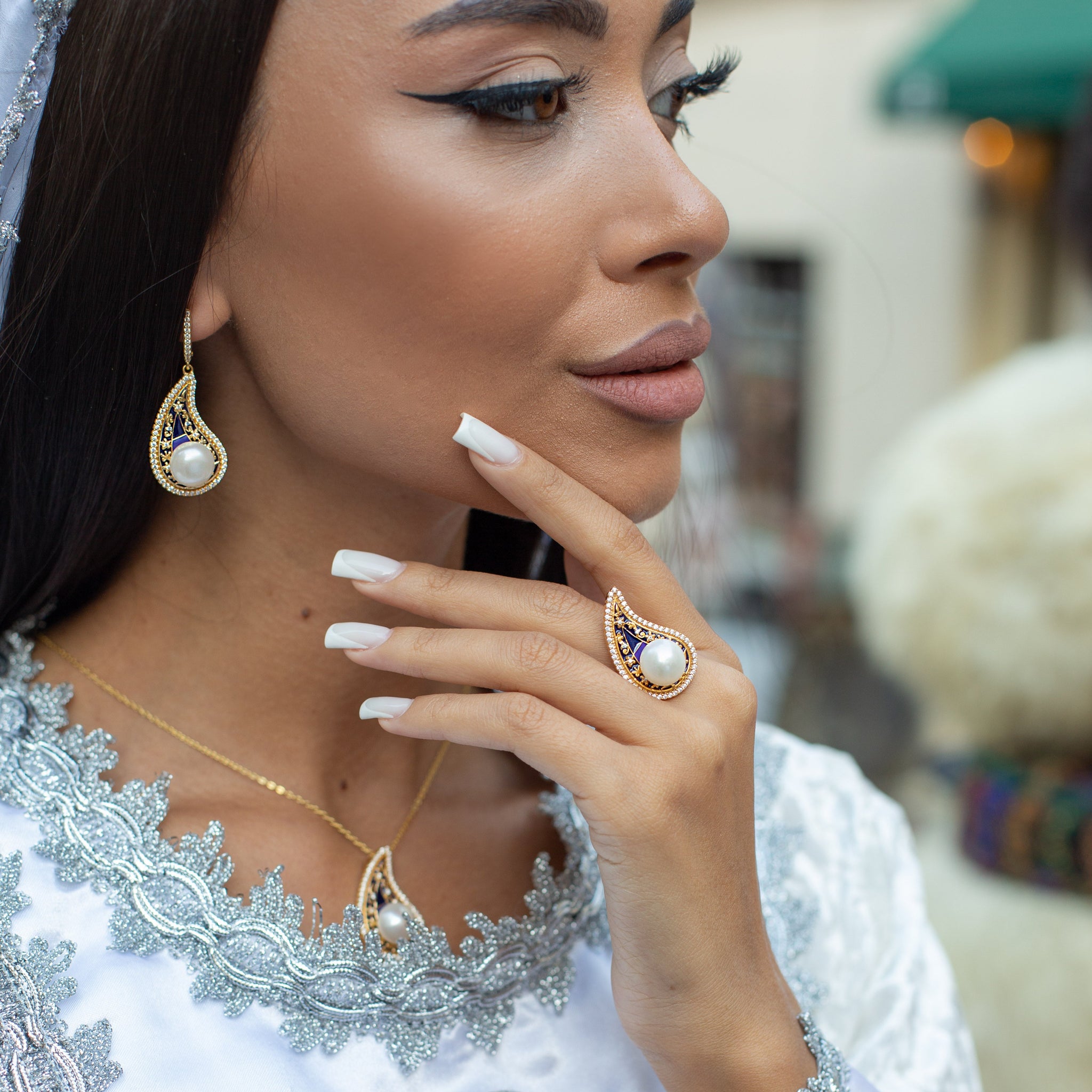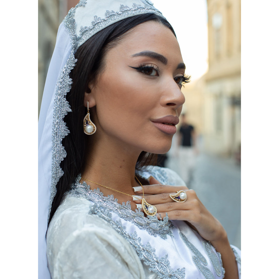 "Buta" dizaynlı əl işi premium italyan gümüşü dəst, qızılı-mavi