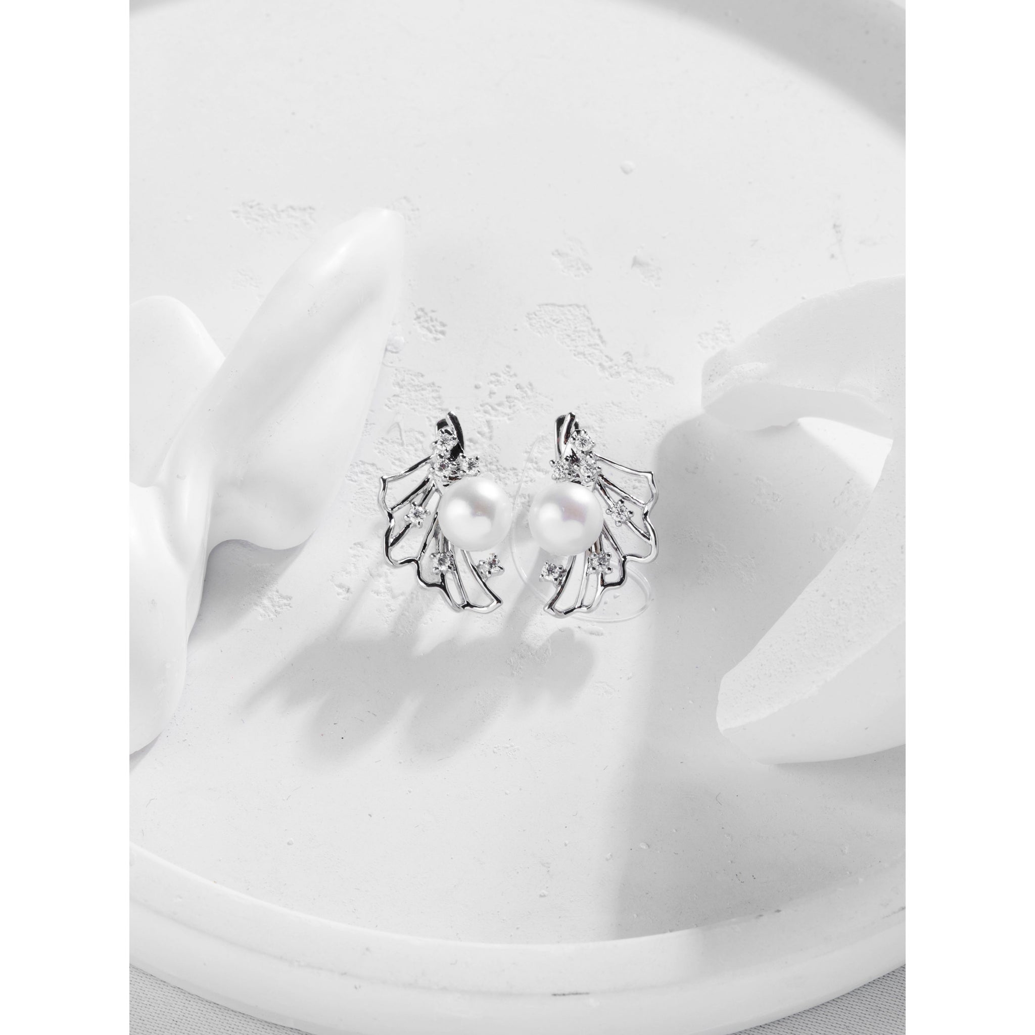 • Qalereya görüntüsünə şəkil yükləyin, Yarpaq dizaynlı italyan gümüşü premium mirvari dəst