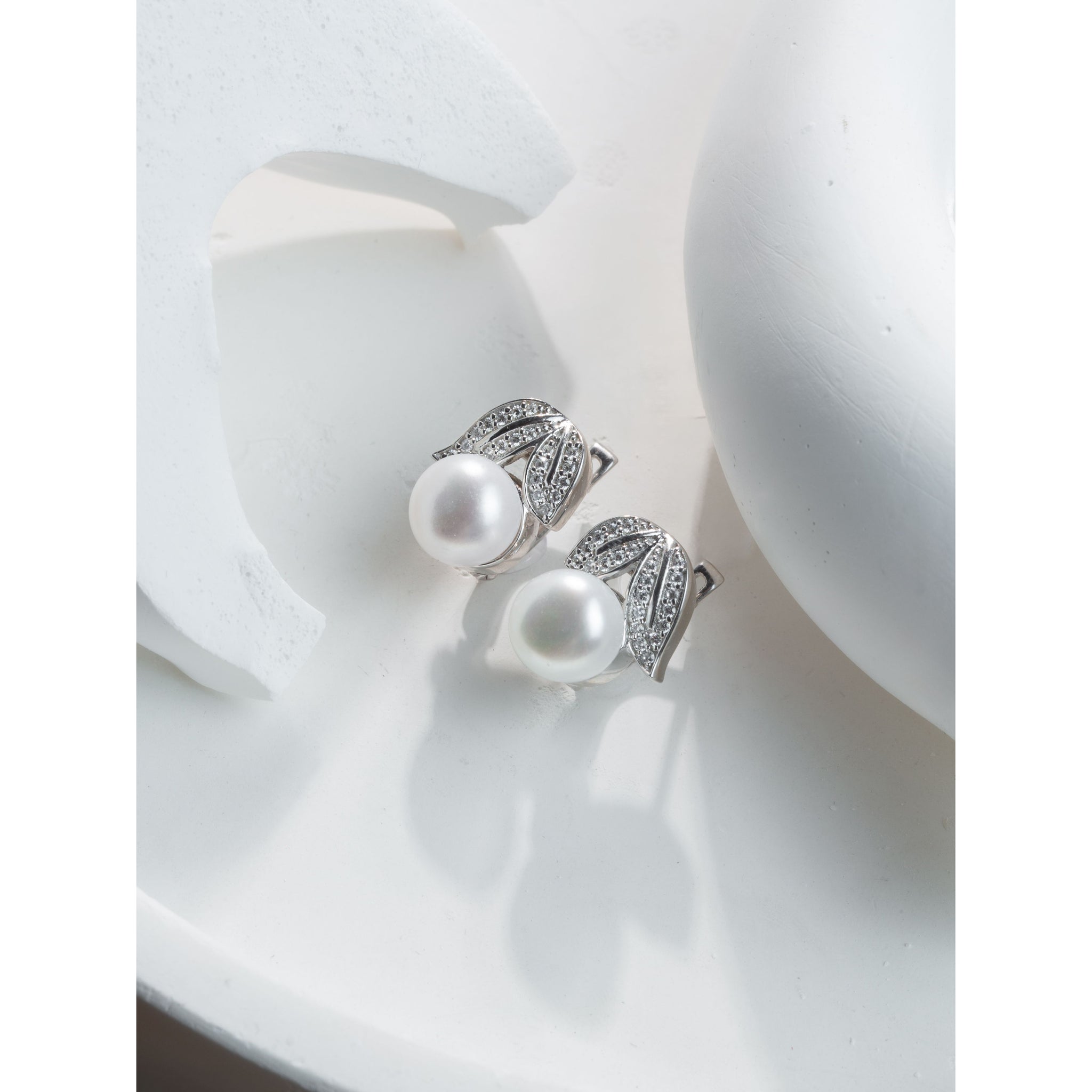 • Qalereya görüntüsünə şəkil yükləyin, Yarpaq dizaynlı zirkon qaşlı italyan gümüşü premium mirvari dəst