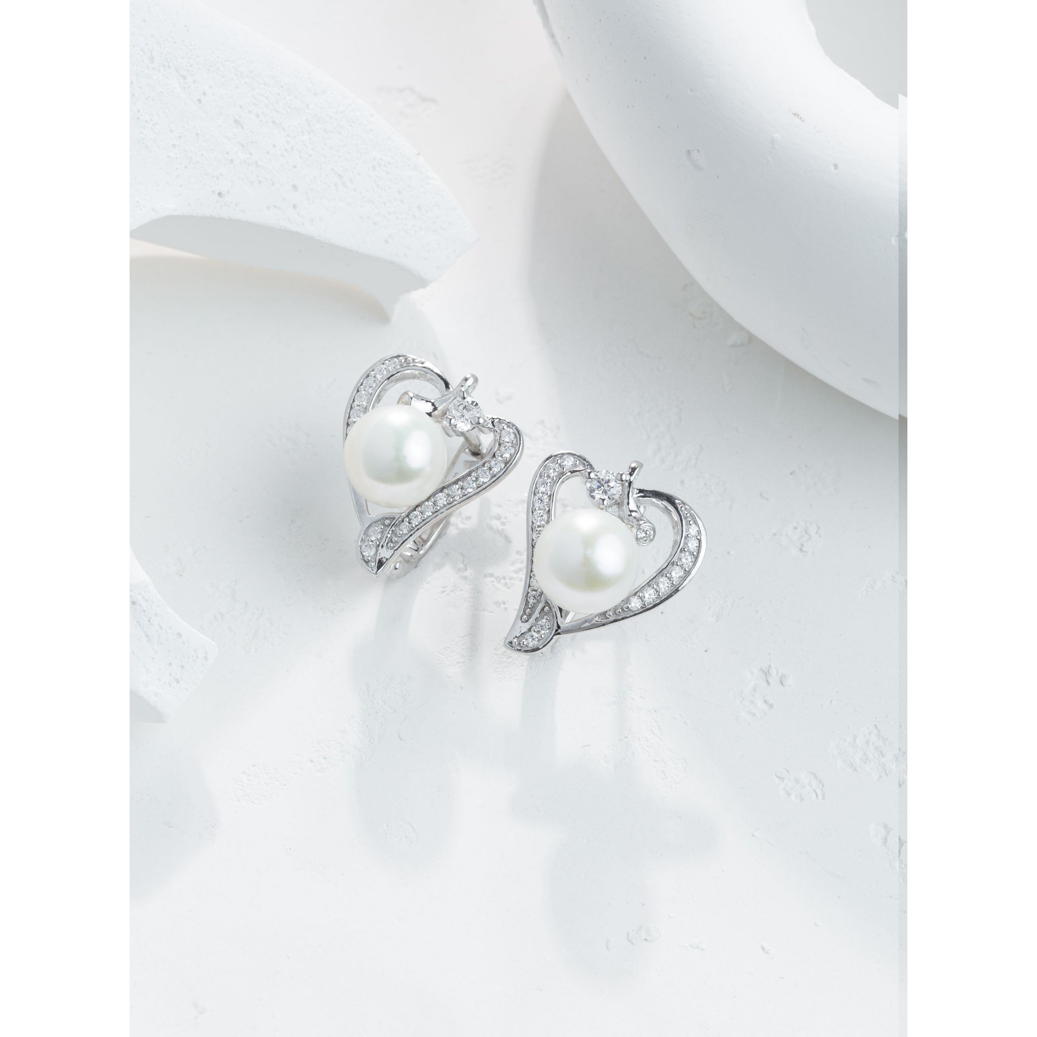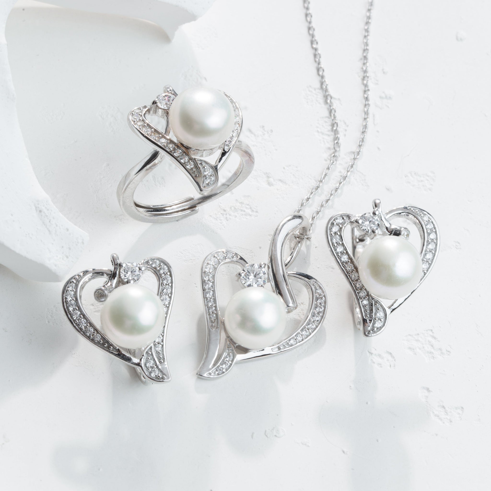 • Qalereya görüntüsünə şəkil yükləyin, Zərif ürək dizaynlı italyan gümüşü premium mirvari dəst