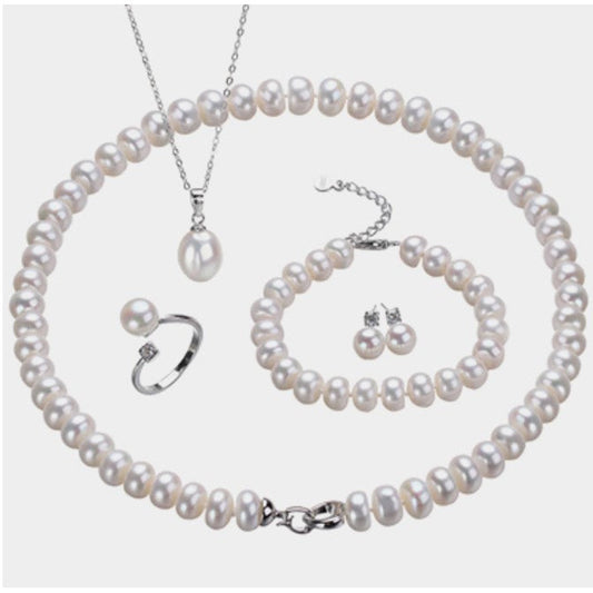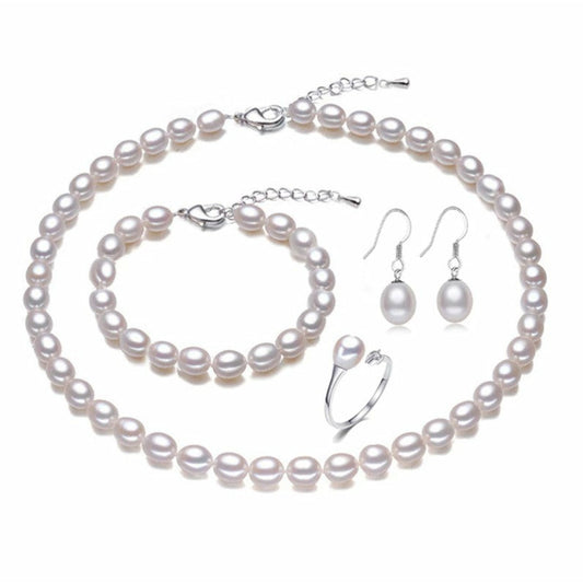AA keyfiyyətli uzunsov mirvari dəst, boyunbağı, qolbaq, sırğa və üzükStokda yoxdur