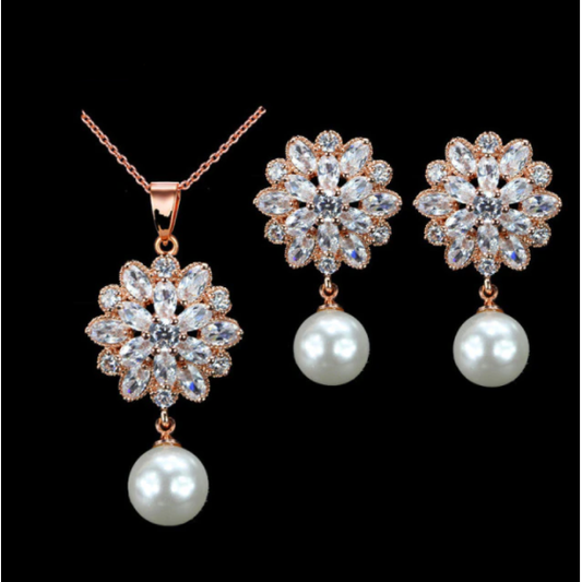 Zirkon qaşlarla işlənmiş mayorika mirvari dəst - gümüşü və qızılıStokda yoxdur