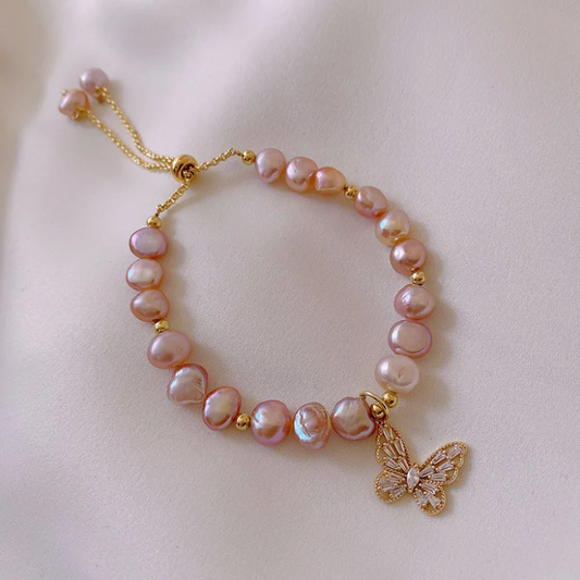 Kəpənək kulonlu çəhrayı mirvari qolbaqStokda yoxdur