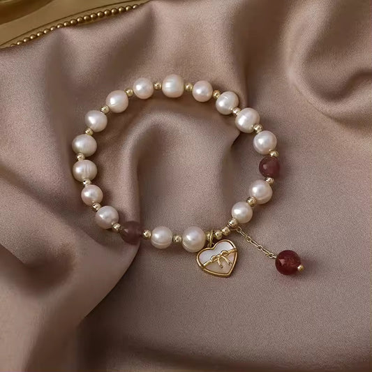 Çiyələk dizaynlı kulonla bəzədilmiş unikal mirvari qolbaqStokda yoxdur