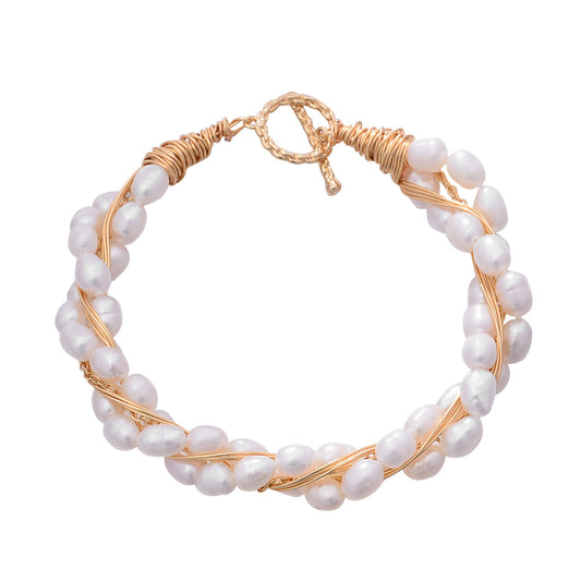 Qızıl zəncirlə hörülmüş qat-qat ağ mirvari qolbaqStokda yoxdur