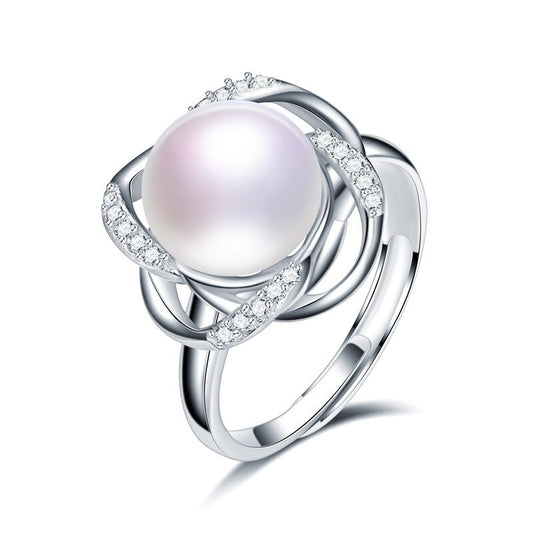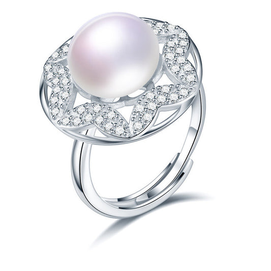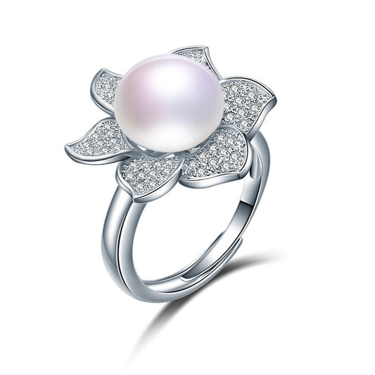 Zirkon qaşlarla işlənmiş altı ləçəkli mirvari üzük - ağ və ya qara mirvari iləStokda yoxdur