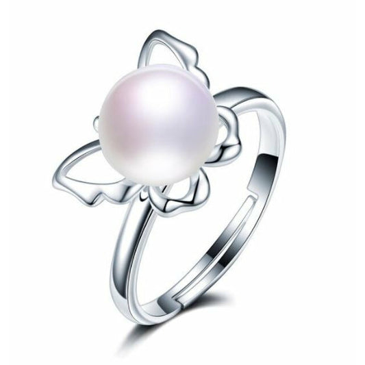 Kəpənək dizaynlı sadə ağ mirvari üzükStokda yoxdur