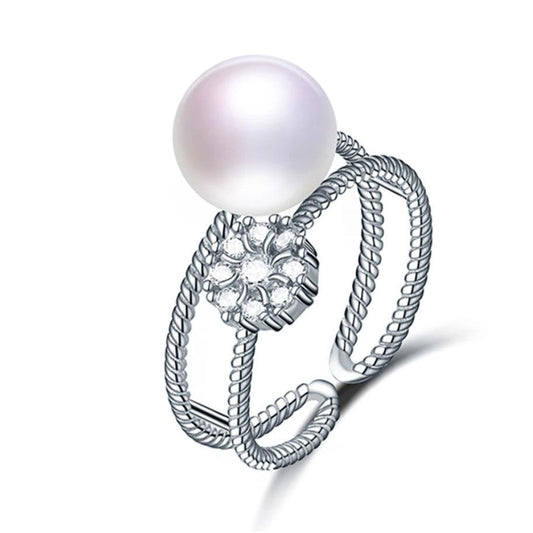 Beş ləçəkli gül dizaynlı ağ mirvari üzükStokda yoxdur