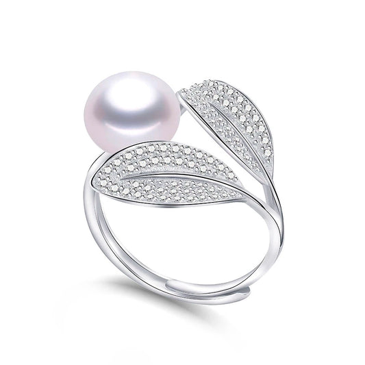 Zirkon qaşlarla bəzədilmiş iki yarpaqlı ağ mirvari üzükStokda yoxdur