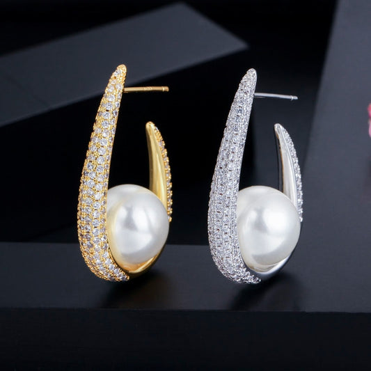 Zirkon qaşlarla işlənmiş mirvari sırğa - ağ, qara, çəhrayı, bordoStokda yoxdur