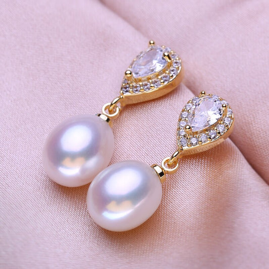 Zirkon Qaşlı Qızılı Rəngli Mirvari SırğaStokda yoxdur
