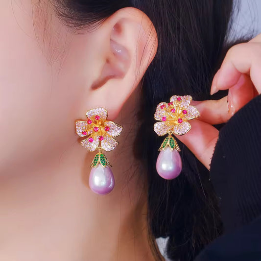 Rəngli gül dizaynlı bordo rəngli mirvari sırğaStokda yoxdur
