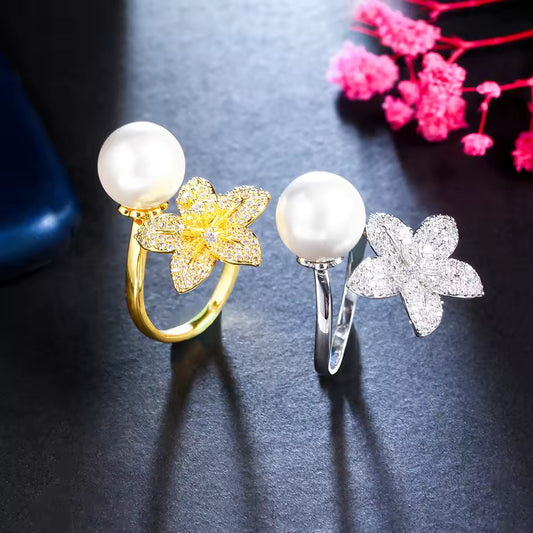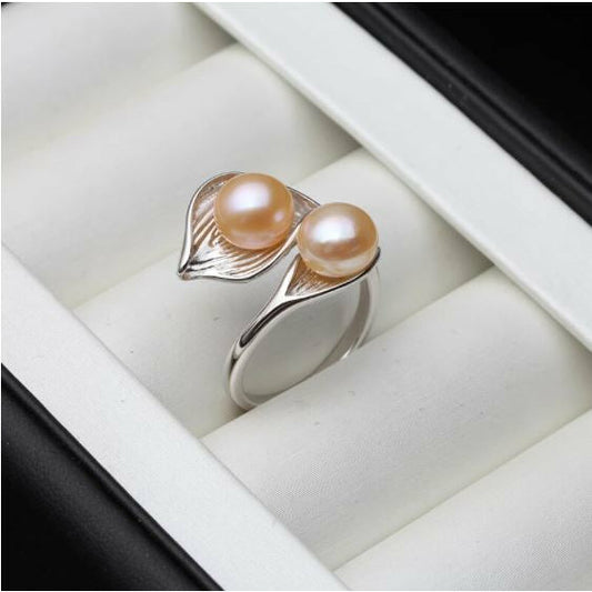İki ədəd çəhrayı mirvari ilə dizayn edilmiş üzükStokda yoxdur