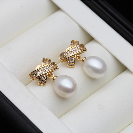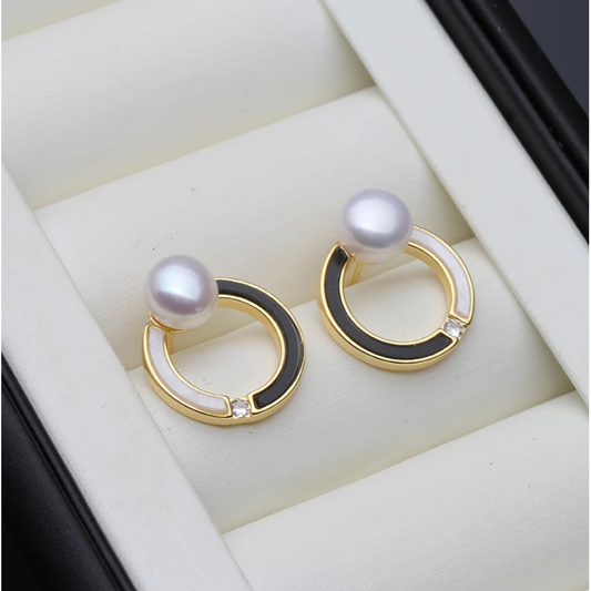 Bantik dizaynlı qızılı mirvari sırğa - ağ və qara mirvari iləStokda yoxdur