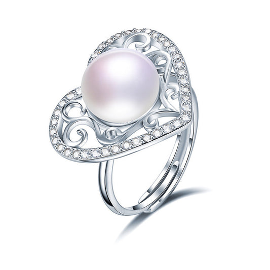 Ürək dizaynlı ağ mirvari üzükStokda yoxdur