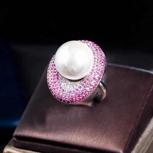 Eynək dizaynlı ağ mirvari üzükStokda yoxdur
