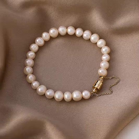 Qızılı maqnit bağcıqla birləşdirilmiş sadə mirvari qolbaqStokda yoxdur