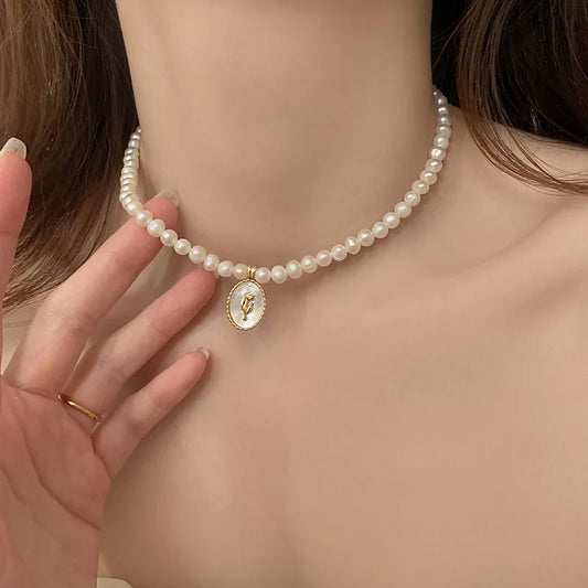 Gül qönçəsi kulonlu sadə mirvari boyunbağıStokda yoxdur