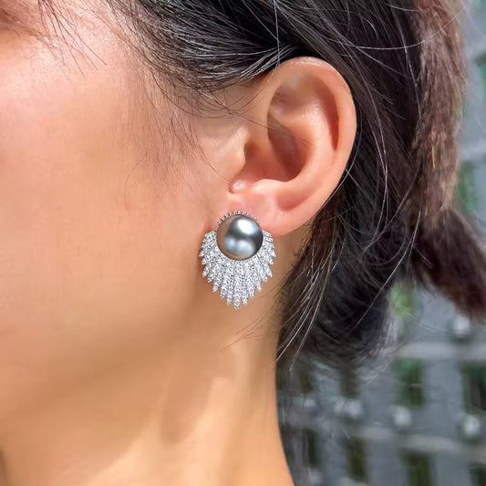 Qara mayorika mirvari ilə tovuzquşu qanadı dizaynlı sırğaStokda yoxdur